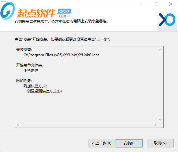 3、安裝程序自動(dòng)進(jìn)入快捷方式設(shè)置的界面,名字為小魚易連
