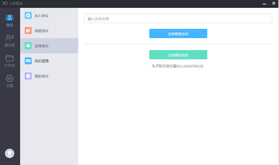 用戶可通過PC客戶端對會議進(jìn)行主持,點(diǎn)擊“主持會議”,在右側(cè)界面輸入所要主持的云會議號,或者直接點(diǎn)擊“主持我的會議”,即可打開主持會議的界面。