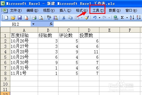 excel2003怎么設(shè)置密碼?打開2003版本的excel表格,需要設(shè)置excel的密碼時可以點擊頂部主菜單中的“工具”菜單。(如下圖)