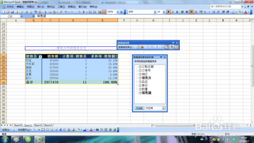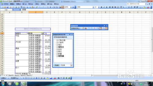單擊數(shù)據(jù)透視表,以顯示【數(shù)據(jù)透視表】工具欄和【數(shù)據(jù)透視表字段列表】面板。