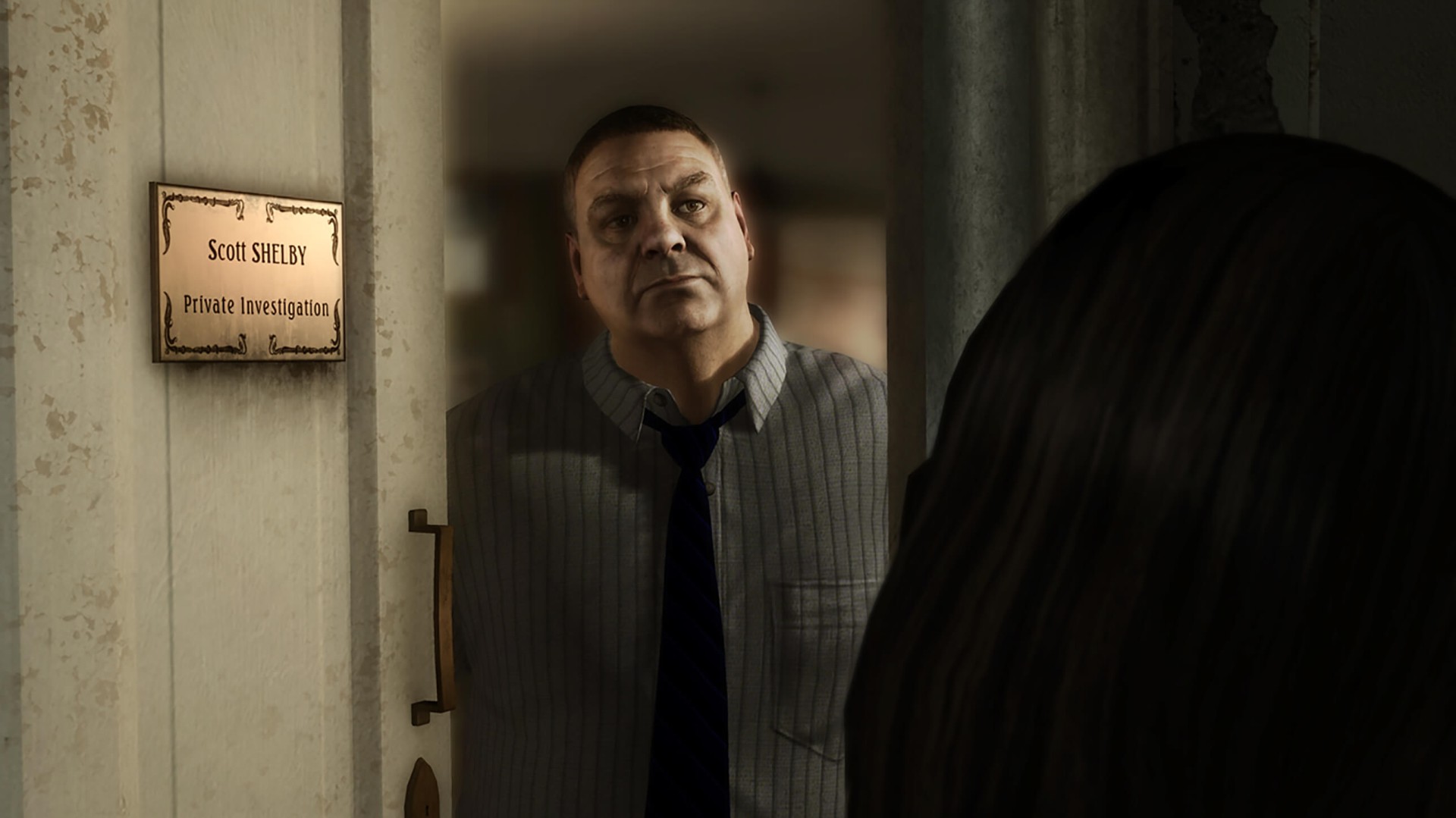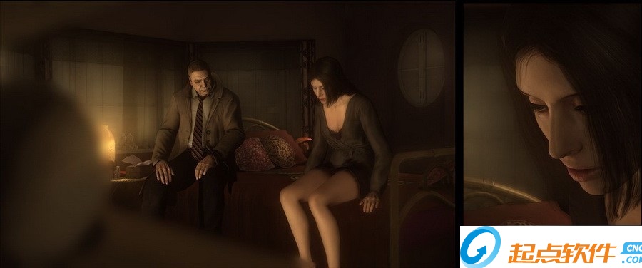 走到門外,史考特的哮喘發(fā)作,取吸入器用藥。此時有個男子進入羅倫的房間,并傳來羅倫的驚叫聲。這個男子叫特洛依,是個有暴力傾向的嫖客,每次都會毆打羅倫。此時可以選擇離開,當然也可以敲門解救羅倫。史考特與特洛依扭打在一起,把特洛依打跑之后,羅倫對偵探先生的態(tài)度好了許多,史考特則一瘸一拐地離開了。