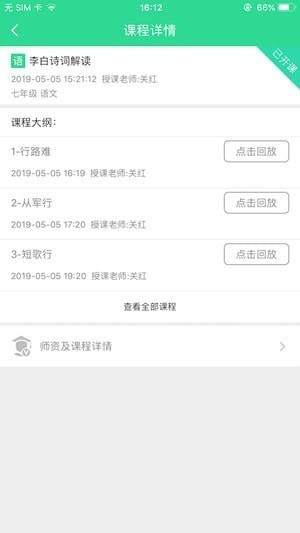 1、上過課程的數量顯示在標題旁,所學進度一目了然。2、 視頻回放:課程結束之后,想回顧之前所學知識,點擊視頻即可回看課程,及時查缺補漏。