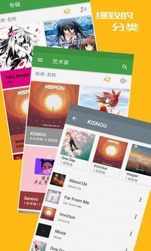1、支持所有最受歡迎的音樂文件格式,mp3,AAC,AMR-NB,AMR-WB,FLAC,MP3,MIDI,Vorbis,PCM / WAVE,FLAC和APE多種格式播放。2、自動導入、分類音樂,自動添加SD卡和手機內存中的所有的本地音樂庫/本地音頻文件,并通過歌曲、專輯、藝術家進行播放列表、播放列隊分類,讓您的音樂瀏覽搜索更加便捷。