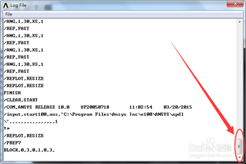 這時候就打開了命令流窗口,將右側(cè)的滑動按鈕拉到最下方,找到頁面底部。如下圖所示。