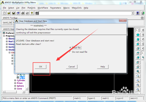 當(dāng)我們發(fā)生了操作失誤時,Ansys是沒有撤回操作按鈕的,我們這時候就可以利用導(dǎo)入之前保存的命令流來實現(xiàn)回到上一步了。首先依次單擊菜單欄的【File】——【Clear&star New...】選項。如下圖所示。