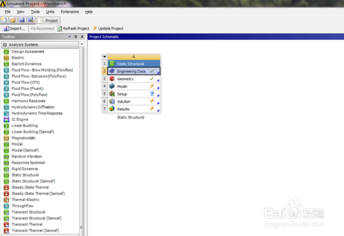 首先,打開ansys,這里以靜力學(xué)分析為例子,選擇Static Structural,導(dǎo)入模型。
