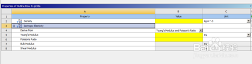 然后從左側(cè)屬性欄選擇密度和材料各項系數(shù),輸入相應(yīng)的數(shù)值,即可生成新的材料。