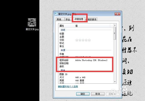 在屬性界面中選擇“詳細(xì)信息”,里面或許會(huì)有圖片處理的痕跡哦。當(dāng)然,如果對(duì)方將照片的屬性等信息刪除了,那么你就查不到處理的信息了。