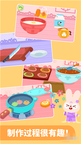 寶寶可以根據(jù)游戲中的制作環(huán)節(jié),親自動手體驗美食制作流程,培養(yǎng)孩子的認知及動手能力,同時讓寶寶明白食物制作不易,應該珍惜糧食