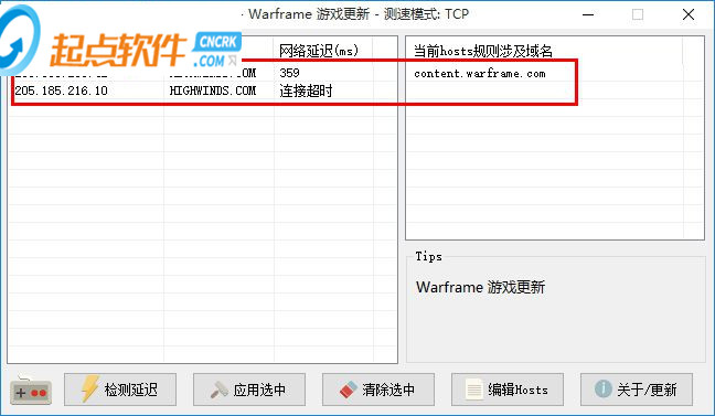 3、接著會(huì)出現(xiàn)一大堆IP,先別急著去用,點(diǎn)擊檢測(cè)延遲,然后選擇延遲最低的地址,點(diǎn)擊應(yīng)用選中即可