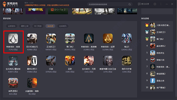 3.此時(shí)小伙伴們根據(jù)游戲分類,可以選擇自己感興趣的游戲,小編以《刺客信條:梟雄》為例,雙擊它開始游戲