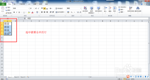 6、行與行的合并,也和合并列一樣,需要用鼠標(biāo)選中合并的行,點擊合并單元格,如圖所示: