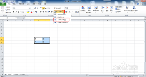 3、然后點擊合并單元格,如圖所示: