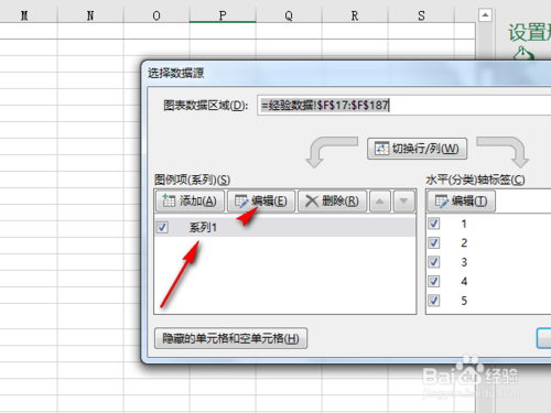 3、勾選系列1——編輯。