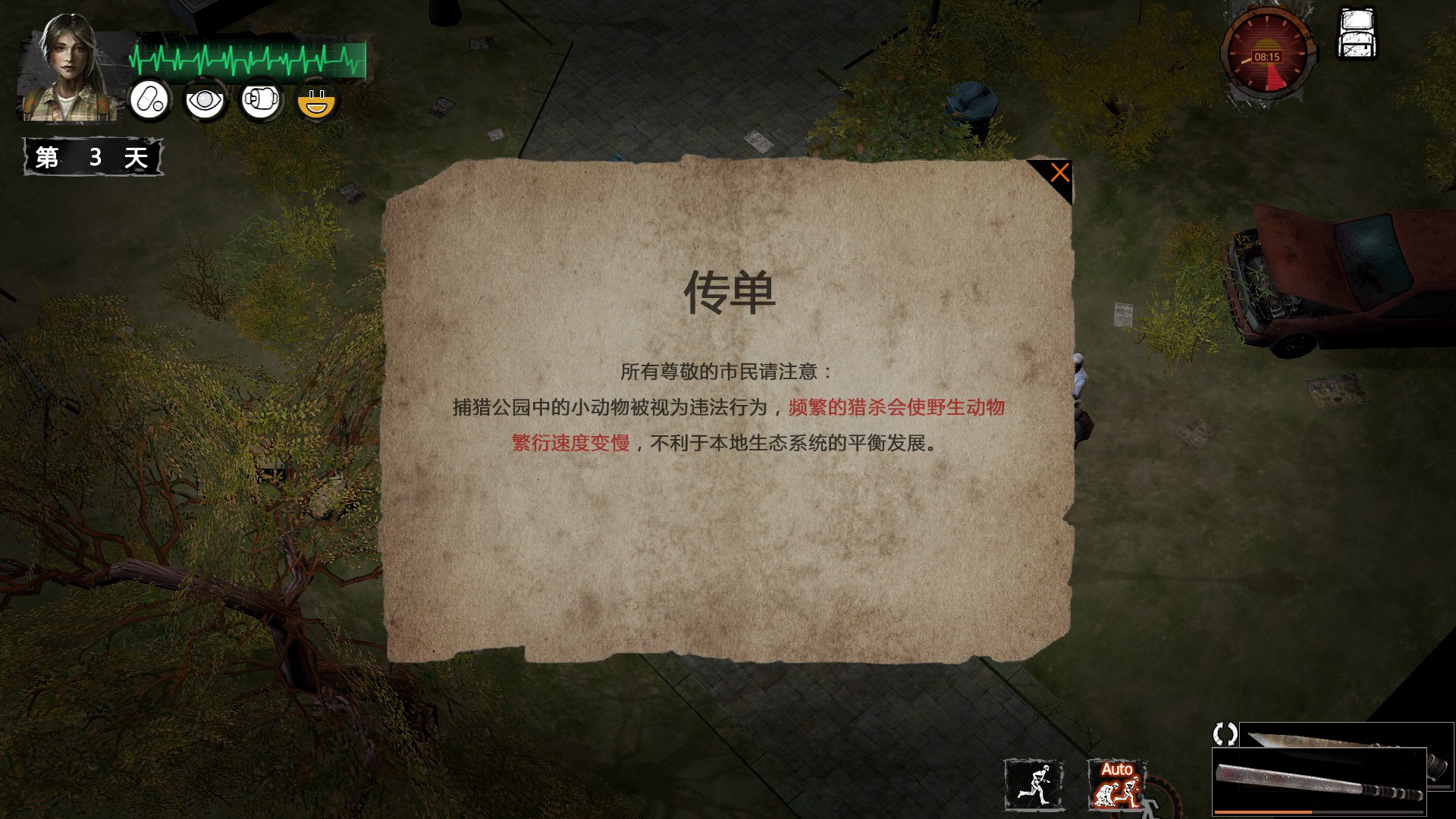 1、學(xué)會先觀察,觀察僵尸的移動路線。前期沒槍要主要一定要做到和僵尸1V1 這樣減少很多受傷幾率。開始有比較多的僵尸是原地不動的,用小刀背后斬殺。通過觀察移動路線之后其實有些僵尸是不會影響到你捜物資的。強烈推薦不殺,只殺那些在你的必經(jīng)之路上或者是在物資附近的僵尸 (節(jié)省前期武器耐久變相節(jié)省材料)。