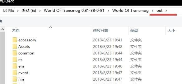 1、下載解壓文件使用拆包工具將游戲文件進行拆包(拆包工具鏈接),將拆包出來的“out”剪切(或復(fù)制)到工具的目錄(即World Of Transmog.exe所在路徑);
