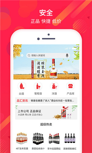 品匯壹號(hào)app是一款主營(yíng)酒品類(lèi)商品的掌上購(gòu)物軟件,品匯壹號(hào)上匯集了國(guó)內(nèi)外知名酒品種類(lèi),用戶(hù)可以通過(guò)本款軟件購(gòu)買(mǎi)到純正的白酒、紅酒、洋酒等,并且還會(huì)不定期舉辦限量搶購(gòu)、專(zhuān)場(chǎng)特賣(mài)等實(shí)惠活動(dòng)。