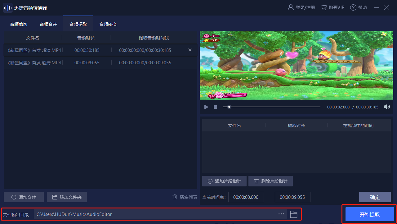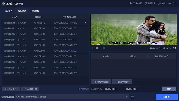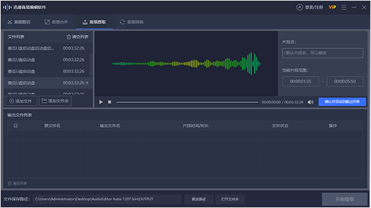 我們可以添加一個(gè)自己想要提取音頻的視頻文件,然后根據(jù)自己的要求調(diào)整提取音頻的位置。完成后,就可以選擇開始提取了。