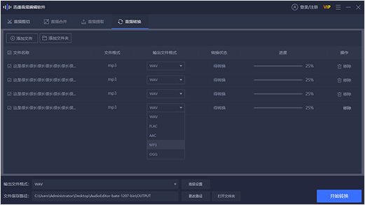 答:可以的。我們在添加文件的時(shí)候,可以一次添加多個(gè)音頻文件或者直接添加文件夾,同樣選擇格式就可以開始轉(zhuǎn)換了。