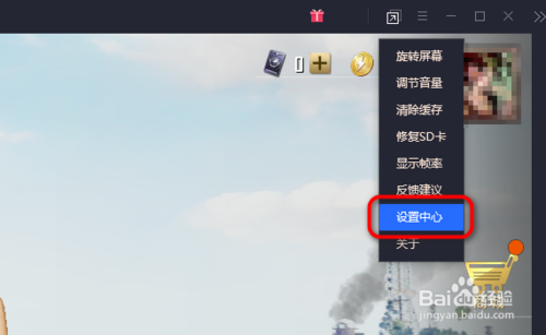 頁面彈出選項(xiàng),點(diǎn)擊設(shè)置中心。