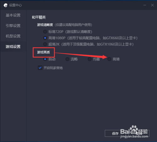 游戲畫質(zhì)默認(rèn)是自動,我們可以選擇高清。