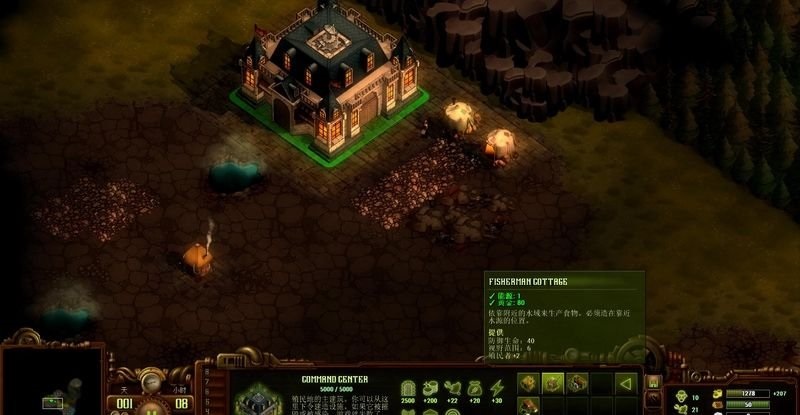 點擊大廳可以進行修建,玩家的首要任務就是建立民居、狩獵小屋維持人口的增長。