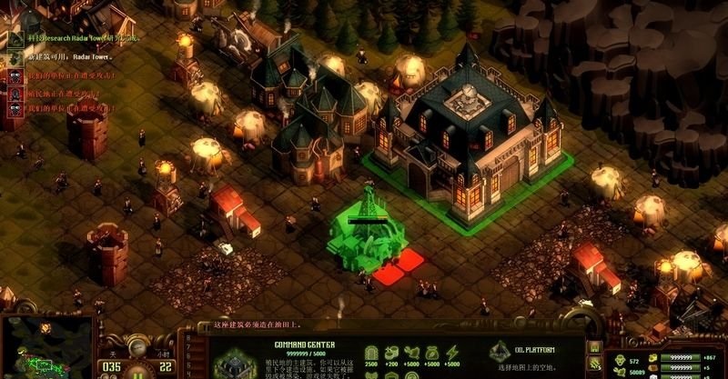 例如圖中,紅線左邊顏色偏綠的區(qū)域就是現(xiàn)在的傳輸范圍,右側的綠塊就是控制中心的修建位置,修好后,右側區(qū)域就可以進行建筑修建了。