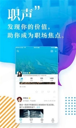 3、綜合個體及機(jī)構(gòu)的職場檔案,職聲把深度有趣的內(nèi)容通過AI智能推送至目標(biāo)用戶,讓每一位入駐用戶都能自由、有效發(fā)聲。