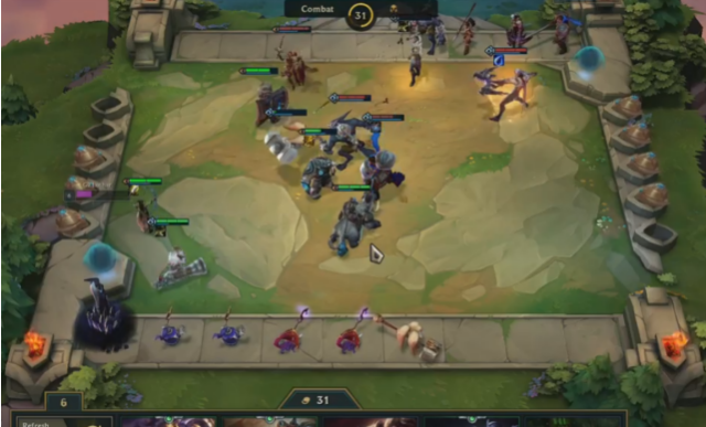 游戲中,玩家可以從隨機(jī)英雄池中征召自己想要的英雄進(jìn)行組合、升級(jí),并通過掌控經(jīng)濟(jì)和排兵布陣等,逐步走向勝利。