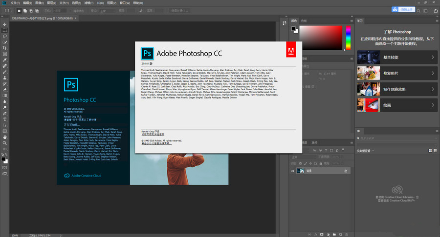 我們再次打開PSCC2019軟件,這個時候我們發(fā)現左上角的試用7天沒有了,那么我們就成功的安裝上軟件啦,接下來就可以正常使用了。如果一直在打轉的小伙伴,我們點擊左上角的PS圖標,直接進入工作區(qū)就可以了。