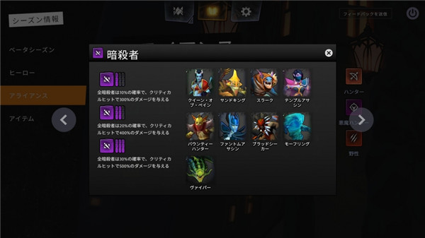 方向鍵:選擇面板上的英雄