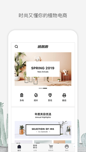 1. 定制首頁:每日推薦精選商品,四季時令植物