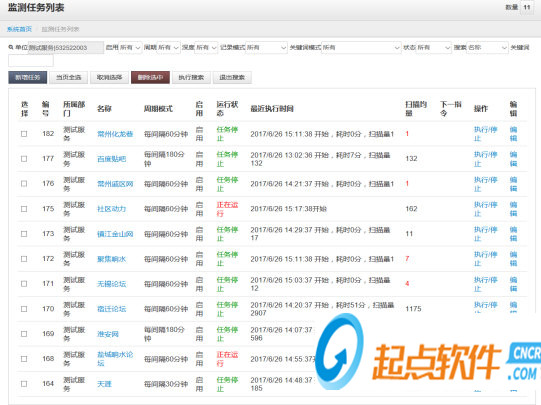 1、監(jiān)測任務管理:通過該模塊用戶可針對不同網(wǎng)站、論壇定義不同的監(jiān)測任務,系統(tǒng)自動按照用戶定義的任務執(zhí)行周期對目標網(wǎng)址進行掃描并比對關鍵詞策略。2、監(jiān)測結(jié)果查詢:通過該模塊用戶可多條件查詢輿情預警情況和所有掃描過的網(wǎng)頁信息,并可以對輿情情況進行圖形分析。