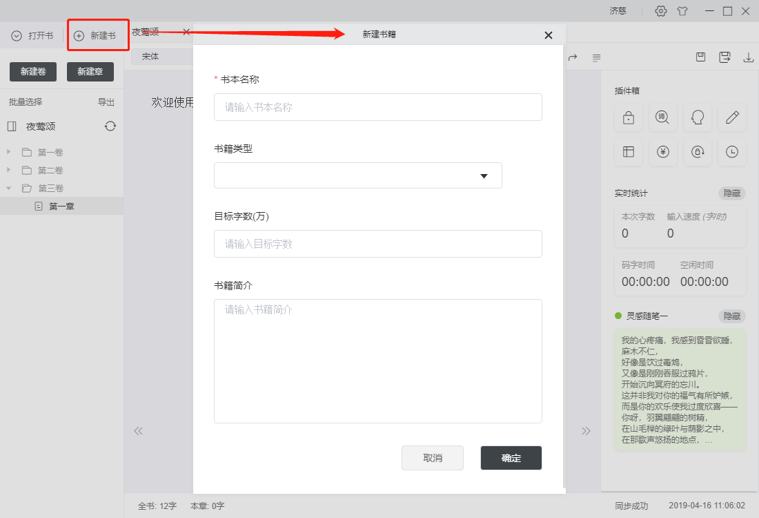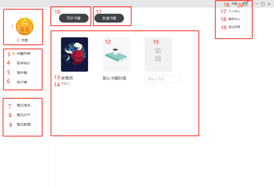 11. 數(shù)字11為新建書籍按鈕,點(diǎn)擊將彈出書籍創(chuàng)建對話框,依照提示可創(chuàng)建書籍;