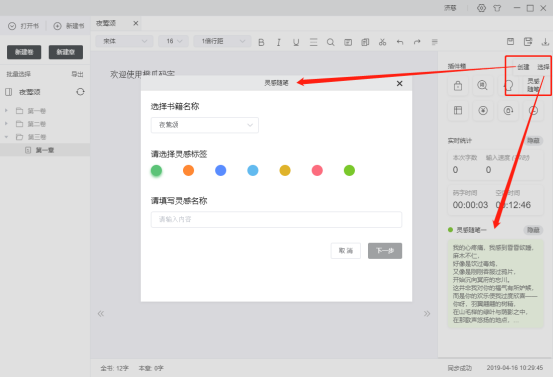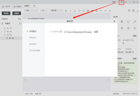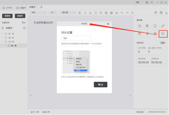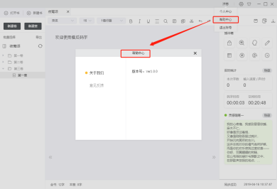 10. 數(shù)字10為目錄章,左鍵單擊該按鈕,編輯區(qū)展示該章內(nèi)容.右鍵單擊,彈出章節(jié)操作框,包含創(chuàng)建新章,重命名,刪除,打開本章文件夾,時光機(jī)等操作;