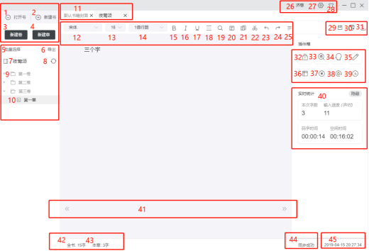 31. 數(shù)字31為導(dǎo)入功能,點(diǎn)擊可將txt格式文檔導(dǎo)入為新章節(jié);