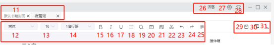 29. 數(shù)字29為保存按鈕,點(diǎn)擊可執(zhí)行保存文檔操作,快捷鍵Ctrl+S;