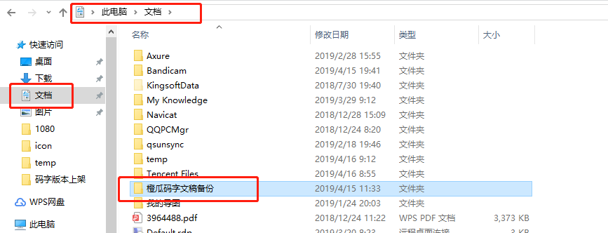 A:橙瓜碼字不僅有線上定時同步功能,還有本地存儲功能;以確保您的稿件不會丟失。本地存儲的文件一般保存在:Windows系統(tǒng):C盤當(dāng)前用戶的文檔下,文件名稱為”橙瓜碼字文稿備份”,請勿隨便移動該文件夾里的東西,見下圖: