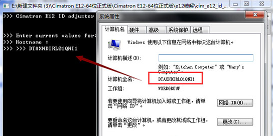 9、回到Cimatron E12安裝目錄,打開(kāi)文件夾“E12破解”運(yùn)行“cim_e12_id_adjuster.exe”,將計(jì)算機(jī)名輸入,敲擊回車(chē),完成后不要將其關(guān)閉