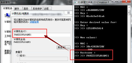 14、再次打開(kāi)計(jì)算機(jī)名,點(diǎn)擊“更改”將計(jì)算機(jī)命改為破解工具“Hostname“項(xiàng)中的內(nèi)容,點(diǎn)擊確定,選擇稍后重新啟動(dòng),然后關(guān)閉破解工具