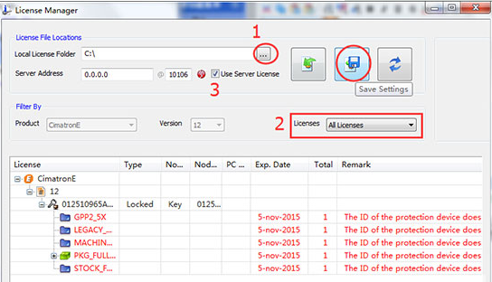 16、點(diǎn)擊選擇許可證所在的目錄,將Licenses項(xiàng)修改我們就可以看到許可證了,不過(guò)由于計(jì)算機(jī)名錯(cuò)誤此時(shí)還提示錯(cuò)誤,將“Use Server license”勾上,點(diǎn)擊保存,然后重啟計(jì)算機(jī)即可