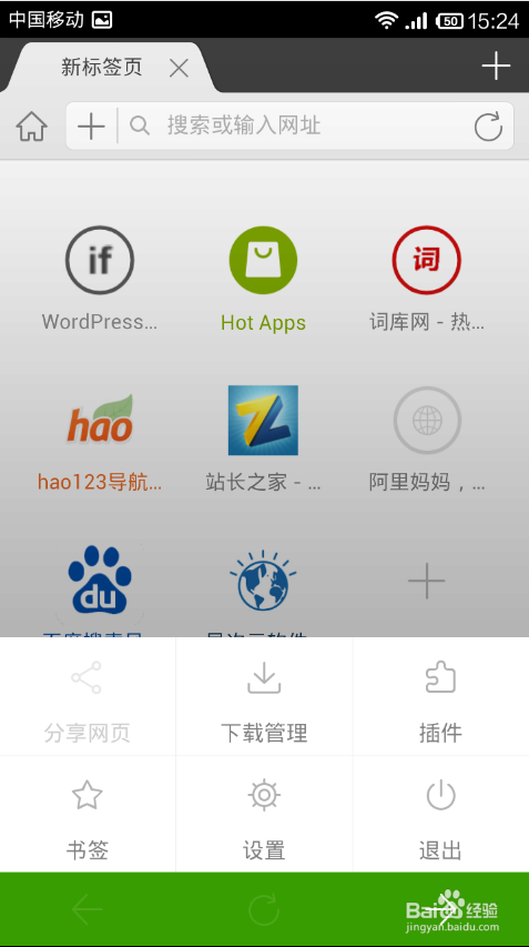 基本操作當你打開海豚瀏覽器后,你可以自定義主頁,或者打開“新建標簽”,瀏覽器的頂部是網(wǎng)頁標簽,跟電腦的操作一樣,打開的網(wǎng)頁多了可以左右滑動來尋找標簽;在瀏覽器界面向右滑動是書簽欄,你可以在這里整理你的書簽;向左滑動是插件欄,你可以開啟插件或者添加插件;點擊手機菜單欄后會出現(xiàn)底部菜單,可以點擊設置來設置瀏覽器;底部右下角的“小綠點”是手勢按鈕,你可以拖動它來達到你的目的。