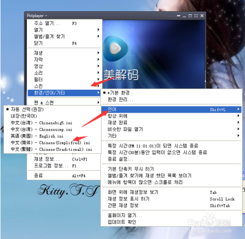 6、但剛安裝后,點(diǎn)擊左上角,彈出的菜單竟然是韓文的,這還要更改一下,設(shè)置成中文簡(jiǎn)體的。按圖去設(shè)置一下就行了。