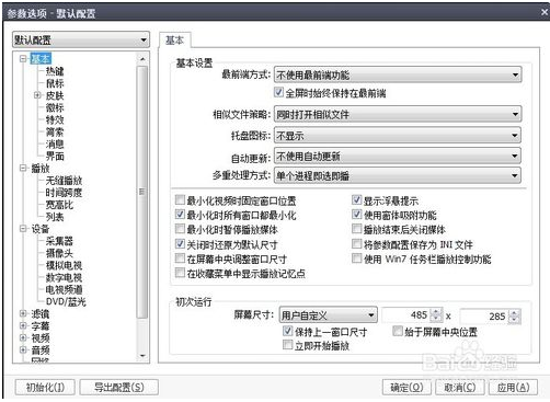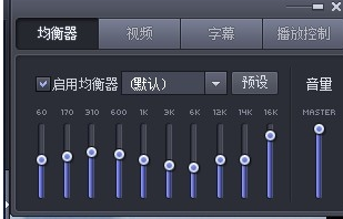 4、播放菜單旁邊,就是一個(gè)控制面板,這里有整個(gè)軟件的設(shè)置參數(shù),均衡器,視頻,字母,播放控制。均衡器這里有很多現(xiàn)成的模板,比如流行音樂(lè),電影,新聞,當(dāng)然也可以自定設(shè)置成小波浪,記得要打勾啟用先。