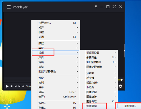 3、拖動(dòng)到起點(diǎn)后我們?cè)谝曨l上點(diǎn)擊鼠標(biāo)右鍵,然后依次打開(kāi)“視頻”—“視頻錄制”—“錄制視頻”,如下圖所示: