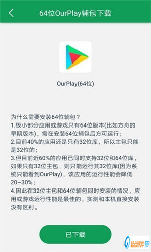部分游戲及應(yīng)用需要安裝64位輔包才可以流暢運(yùn)行。所以,為了保證在OurPlay下載的所有游戲及應(yīng)用達(dá)到最佳的運(yùn)行性能,建議你在進(jìn)行完上述安裝后,前往【我的】-【設(shè)置】-【64位OurPlay輔包下載】下載輔包。