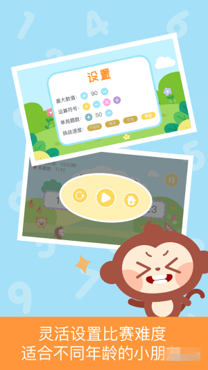 加減乘除,5到100,家長可以根據(jù)孩子的年齡和學習情況靈活設(shè)置難度,循序漸進的提升寶寶的速算能力;