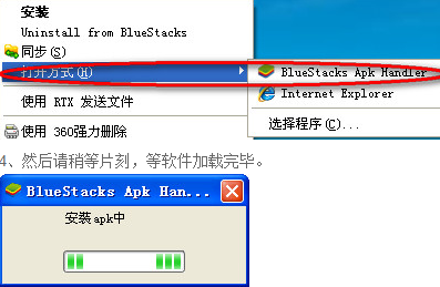 win7系統(tǒng):下載并安裝模擬器即可,右擊打開方式選擇“BlueStacks apk handler”。
