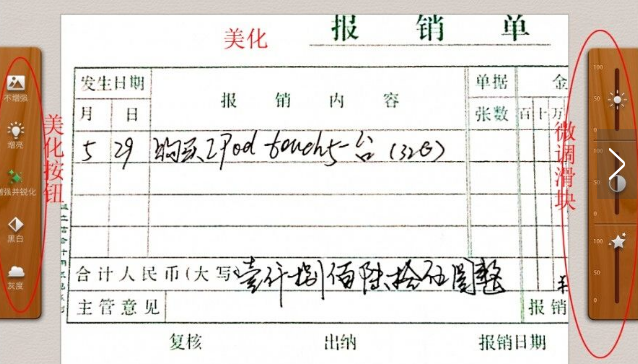 多種圖像處理模式,可手動(dòng)調(diào)節(jié)圖像參數(shù),用手機(jī)即可將紙質(zhì)文件,快速轉(zhuǎn)為清晰的電子稿。