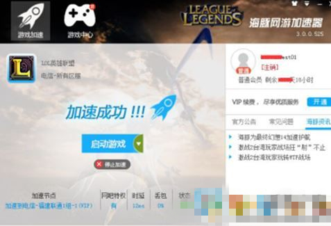 3、外服游戲無需選擇分區(qū)哦,選擇“立即加速”或點(diǎn)“確定”,提示加速成功;